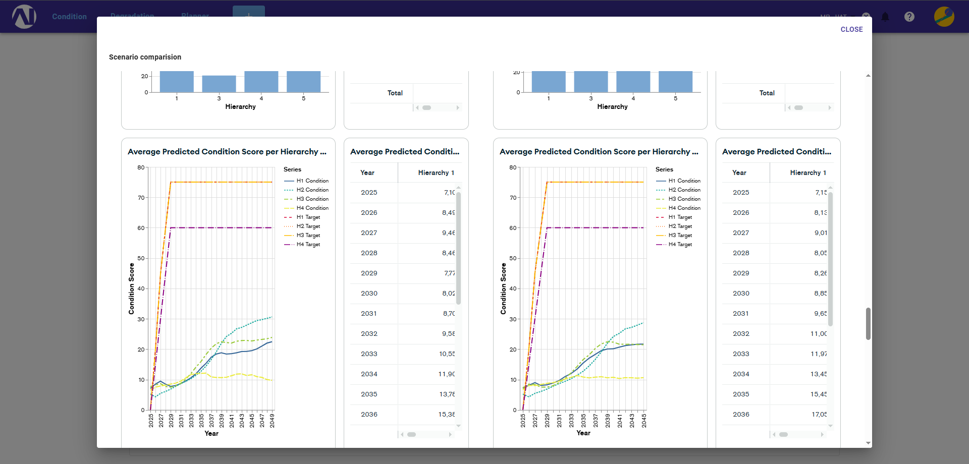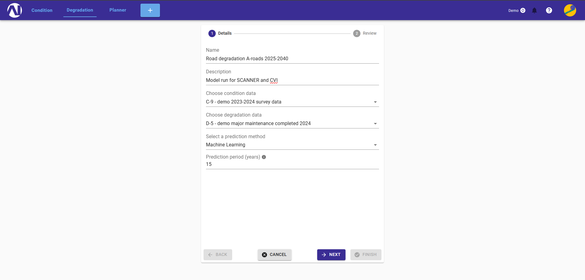 Maince Predict uses AI models that have been trained on data from thousands of km’s of roads of different types and hierarchies. It can predict the degradation of pavement based on survey data from visual inspections, road scans and skid resistance tests.